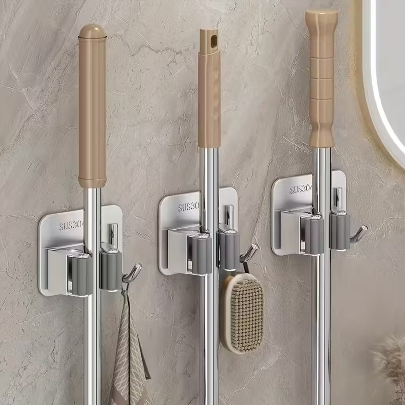 Сбогом на метлите, които падат, и на хаоса зад вратата! Тези многофункционални стойки и куки от неръждаема стомана ще ви помогнат да поддържате ред и стил във всеки ъгъл на дома. С тях подредбата не изисква усилия – само едно „щрак“ и всичко си има място.