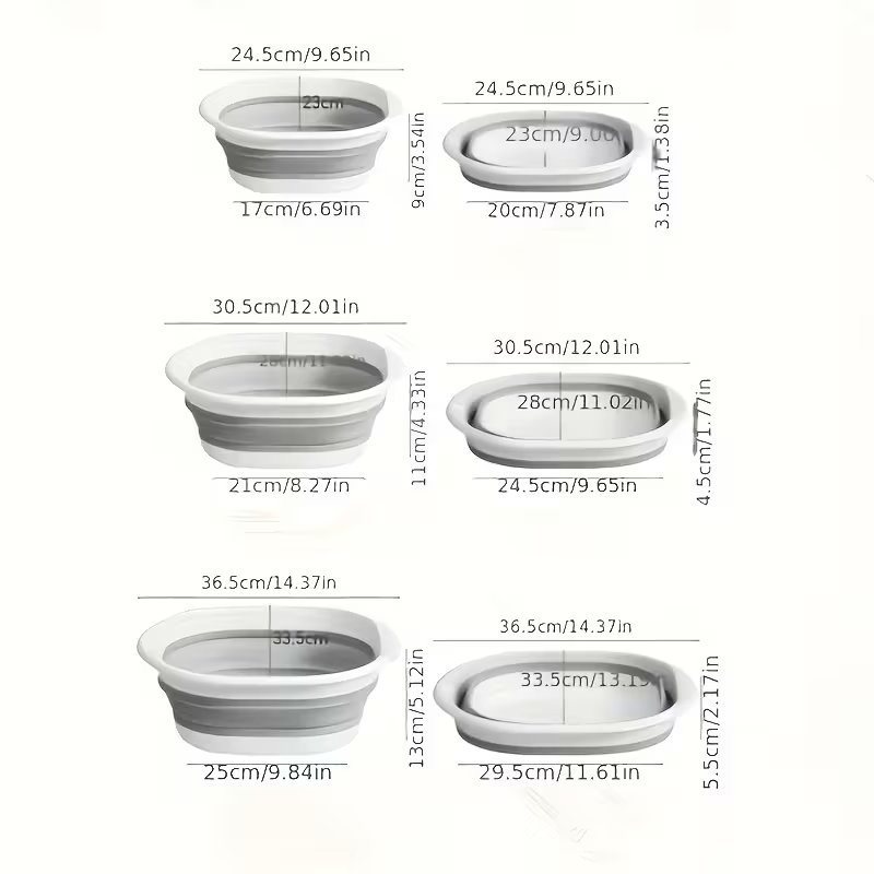 Комплектът от 3 сгъваеми купи е верен помощник във всекидневието – от кухнята до банята. Лесни за пренасяне, леки и удобни за съхранение, те съчетават практичност и стил с ретро усещане за уют.