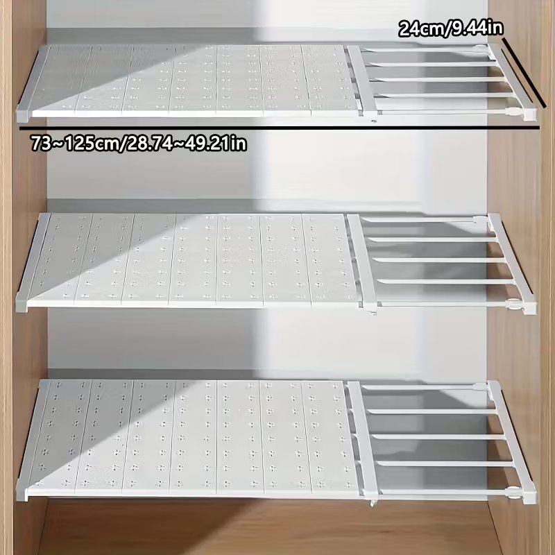 Универсален рафт с регулируема височина и монтаж без пробиване. Перфектен за обувки, аксесоари, козметика или кухненски продукти – стабилен, лек и стилен.
