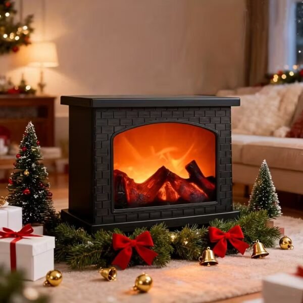 Декоративна лампа „Огнище“ с ефект на пламък – USB и батерийно захранване, без нагряване, за коледна и домашна атмосфера