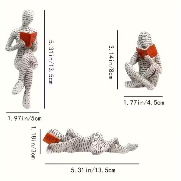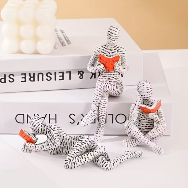 Комплект от 3 декоративни фигури „Четящи хора“ – модерни абстрактни статуи от смола за офис, библиотека и домашна декорация